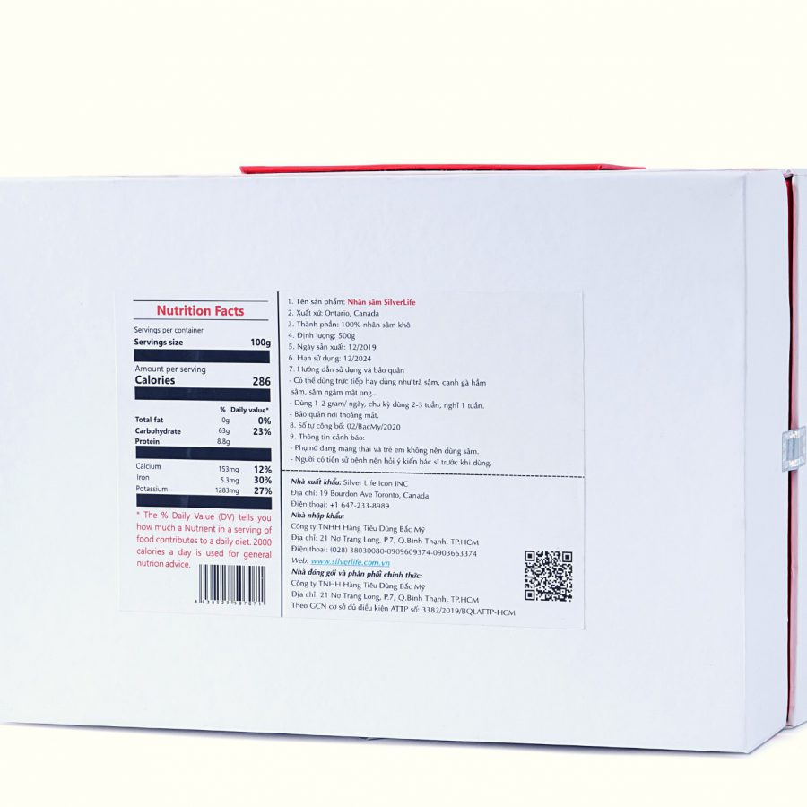 Thông Tin Sản Phẩm Nhân Sâm Canada SilverLife Nguyên Củ Classic Hộp 500g