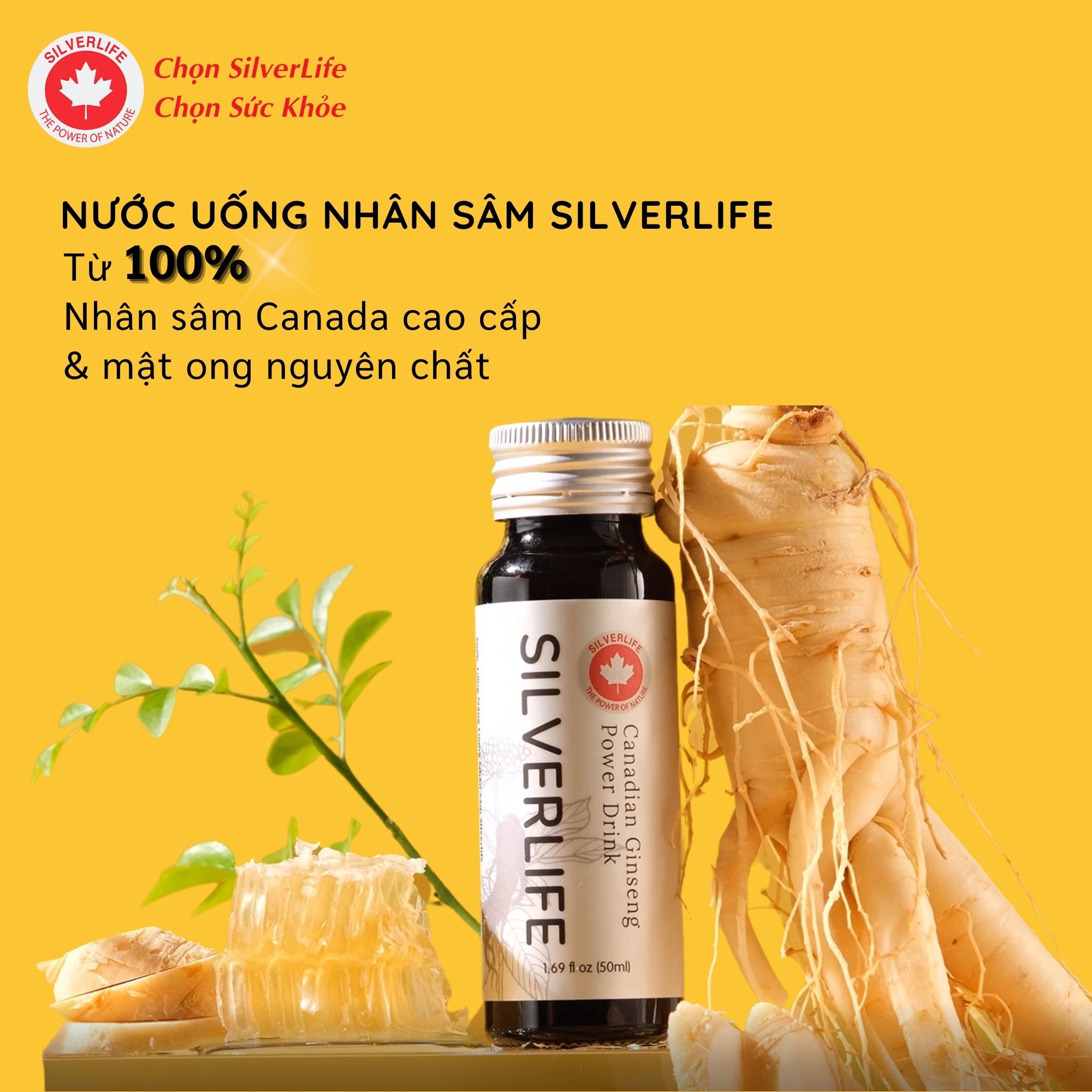 - 100% NHÂN SÂM CANADA: Nước uống nhân sâm SilverLife được chiết xuất từ 100% nhân sâm Canada cao cấp 5 năm tuổi.