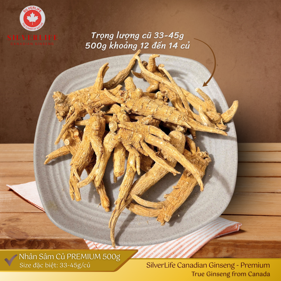 Nhân sâm Canada SilverLife Premium (33–45g/củ) là dòng sản phẩm thể hiện rõ giá trị cao nhất của nhân sâm nguyên củ, nơi kích thước, hình thể và chất lượng hội tụ.