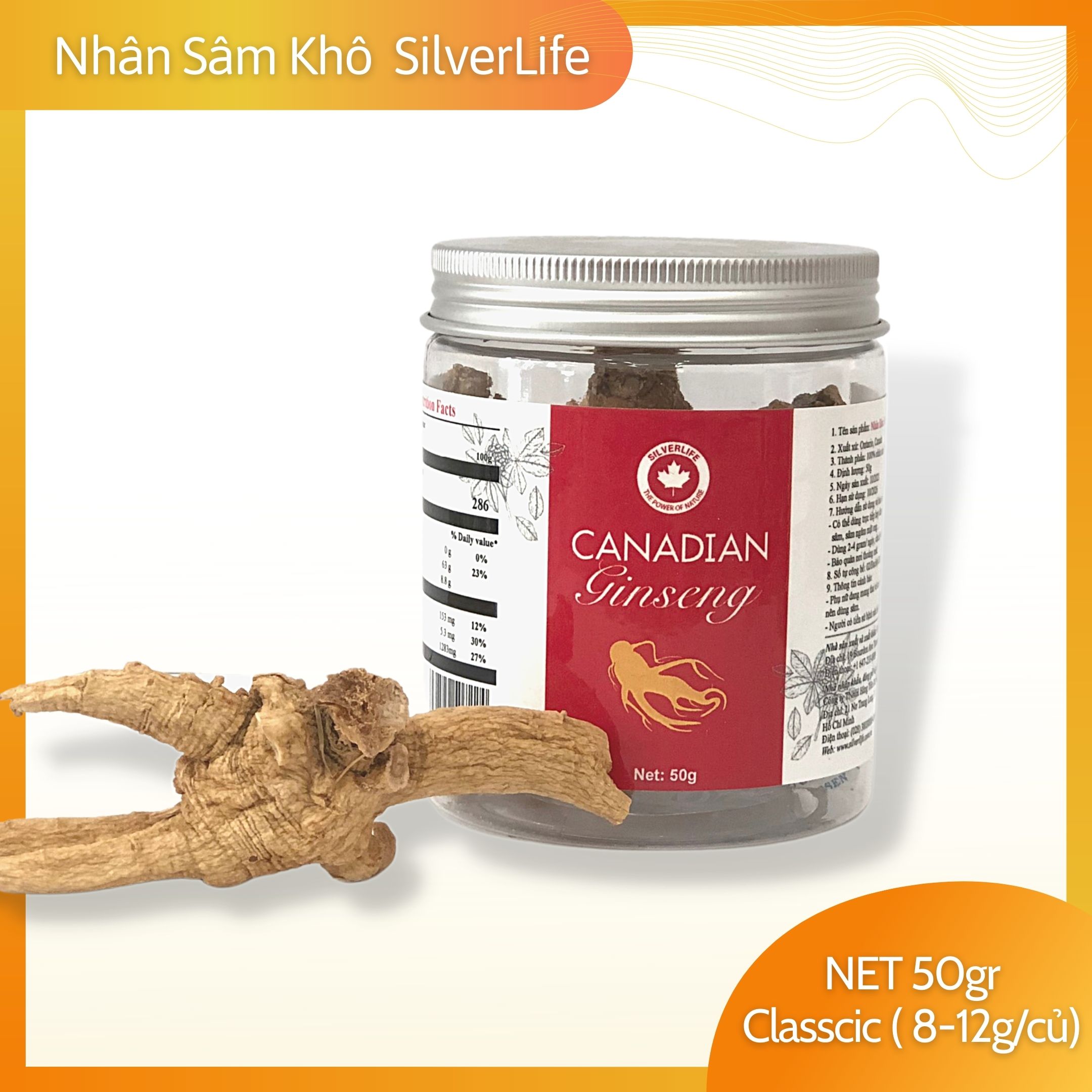 Nhân Sâm Khô Canada SilverLife hũ 50gr | Siêu tiết kiệm