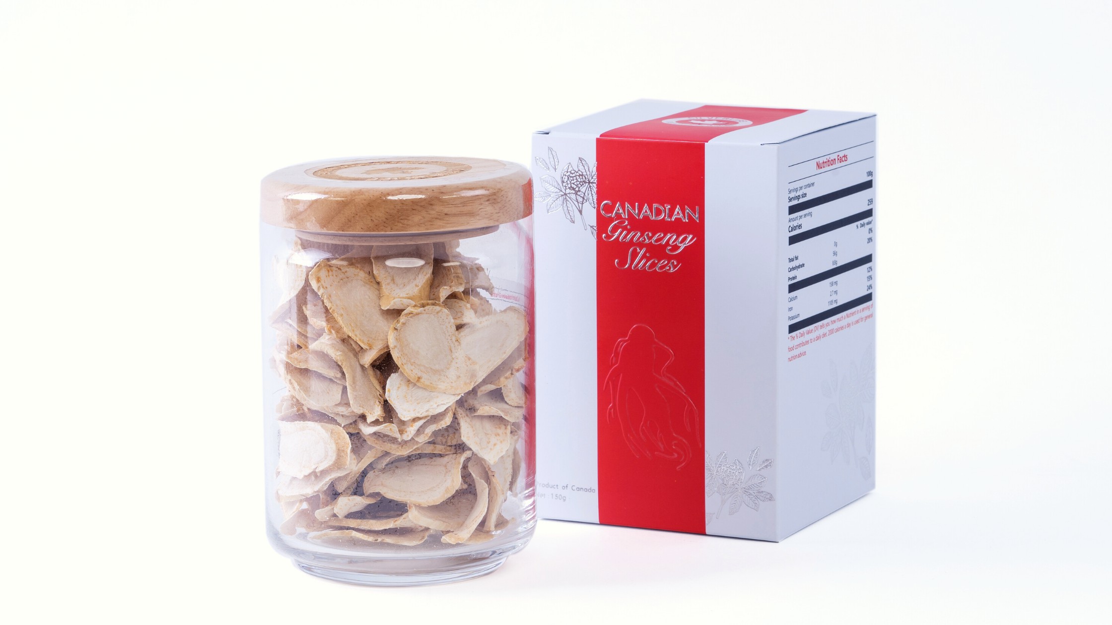- 100% nhân sâm Canada khô cắt lát.