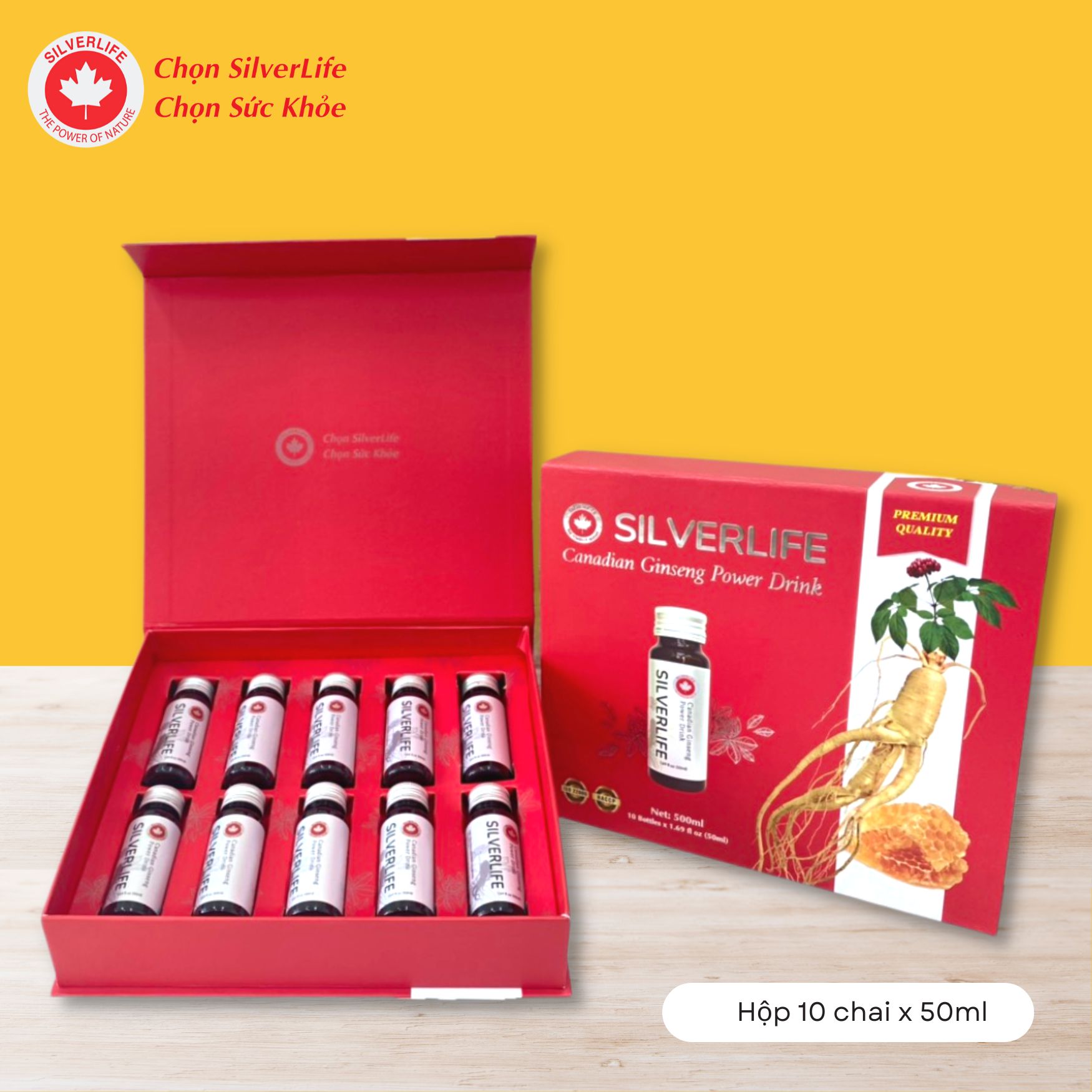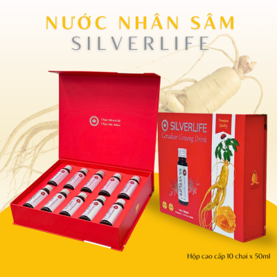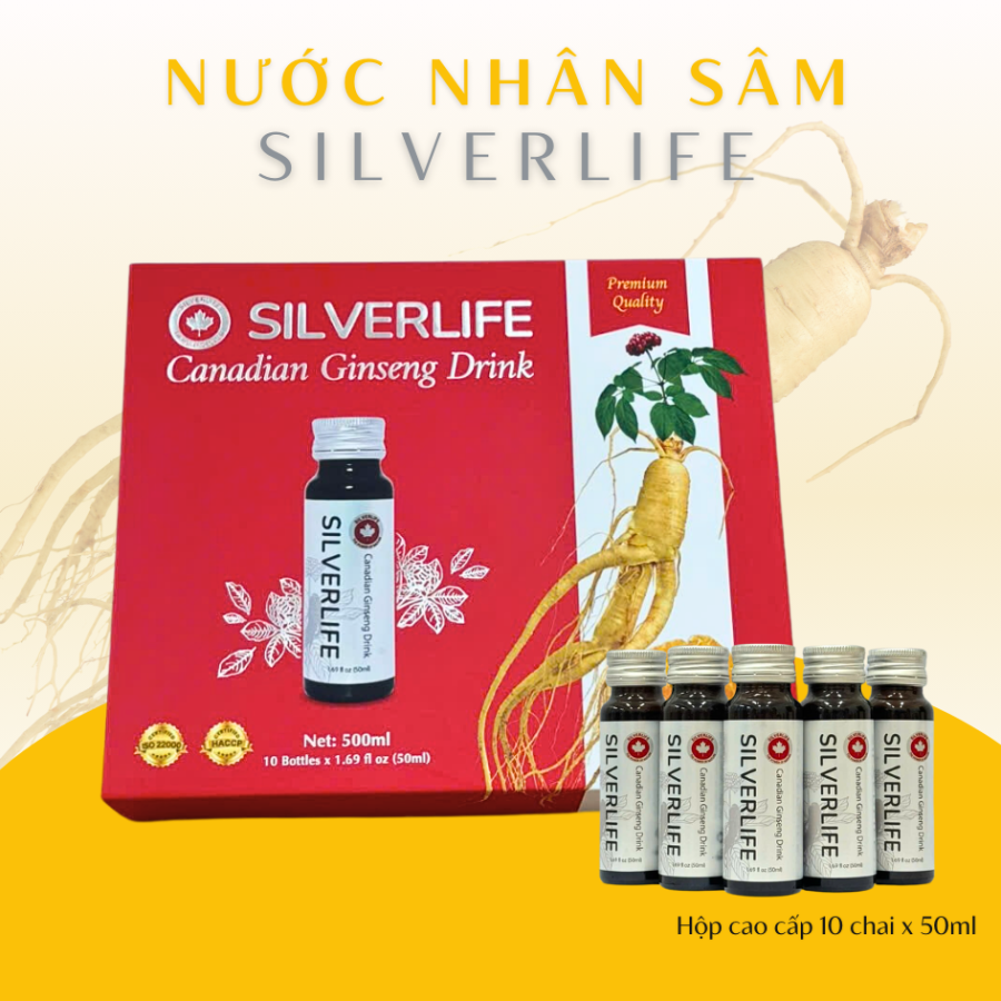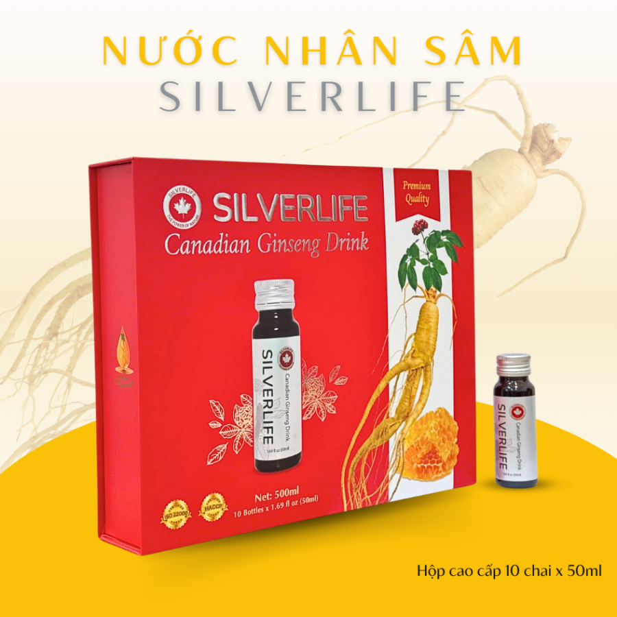 - 100% NHÂN SÂM CANADA: Nước uống nhân sâm SilverLife được chiết xuất từ 100% nhân sâm Canada cao cấp 5 năm tuổi.