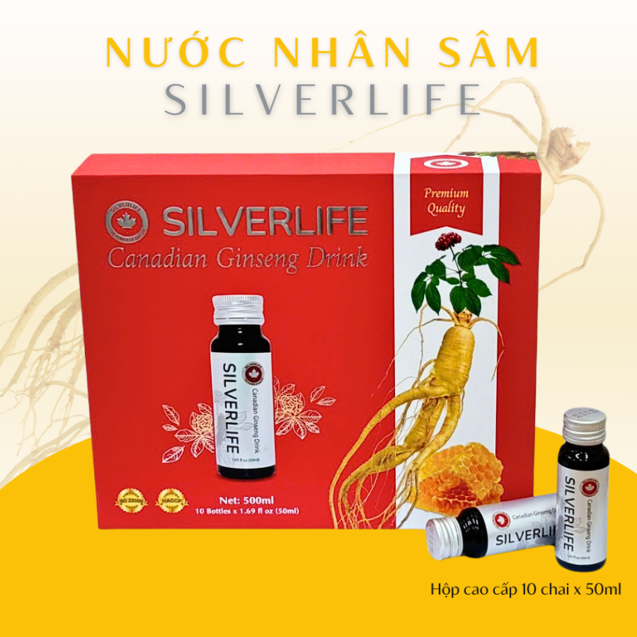 Nước uống nhân sâm SilverLife là nguồn năng lượng tự nhiên với chiết xuất nhân sâm lỏng tinh khiết được làm từ 100% nhân sâm Canada cao cấp và mật ong nguyên chất, được sản xuất tại nhà máy được chứng nhận đạt tiêu chuẩn ISO 22000 và chứng chỉ HACCP.